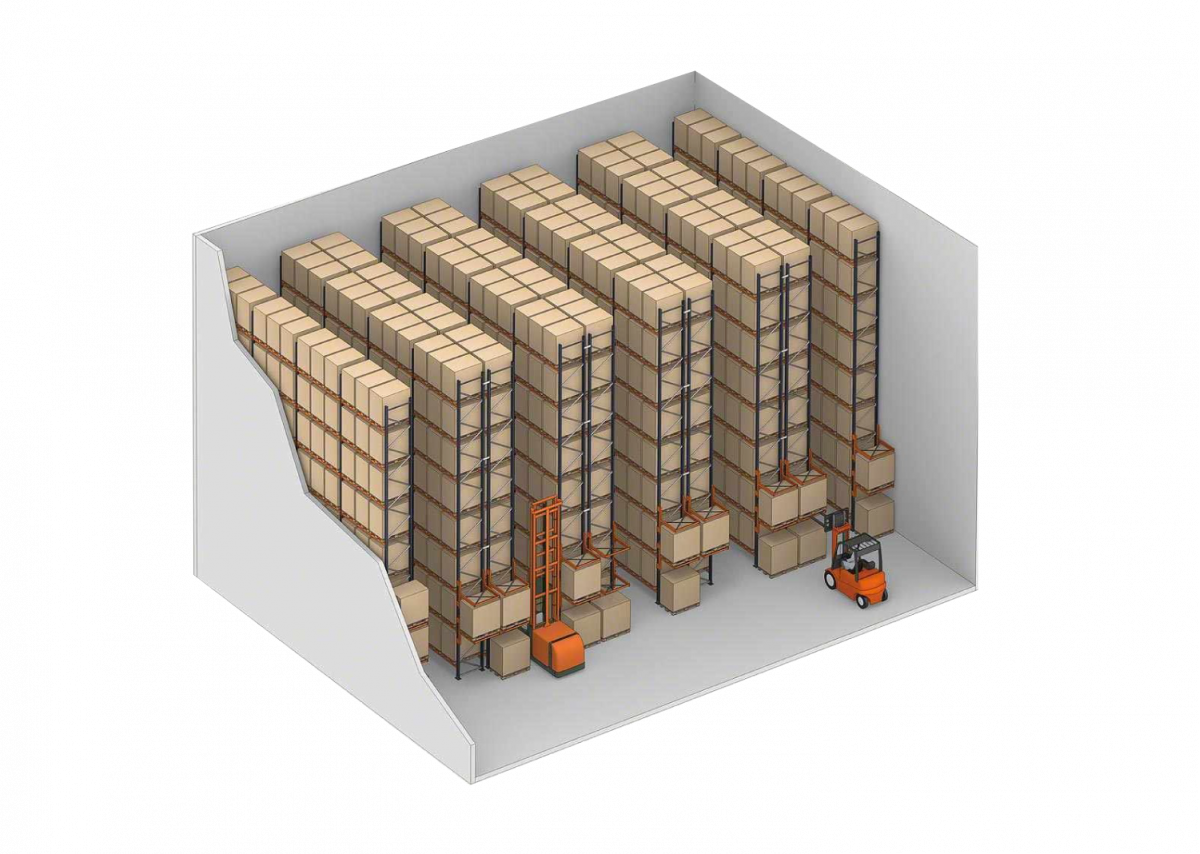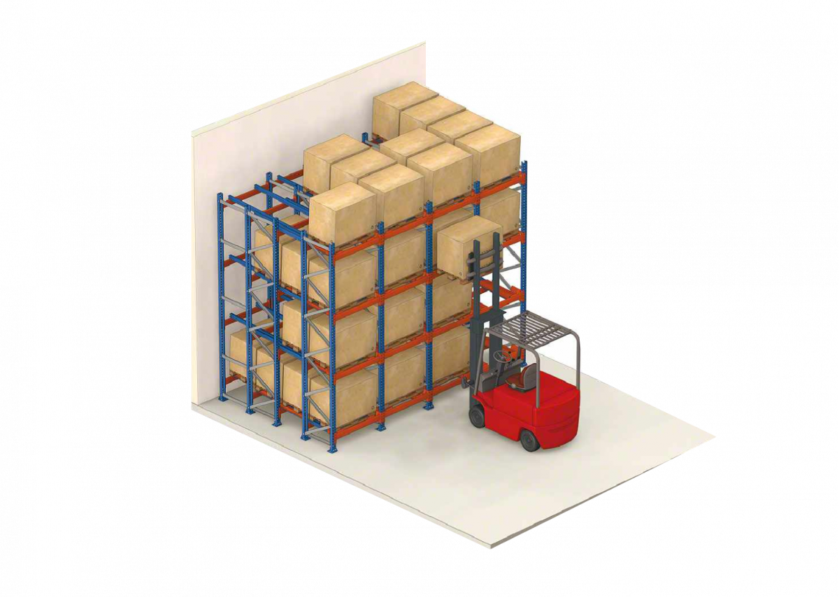 Este tipo de estantería es especial cuando los productos a almacenar están compuestos de referencias de similares características, y no requieren rotaciones en tiempos cortos. Este sistema permite operar el montacargas en toda la profundidad del túnel de la estantería, obteniendo el máximo aprovechamiento del espacio disponible, tanto en la superficie como en la altura (Sistema Lifo).
